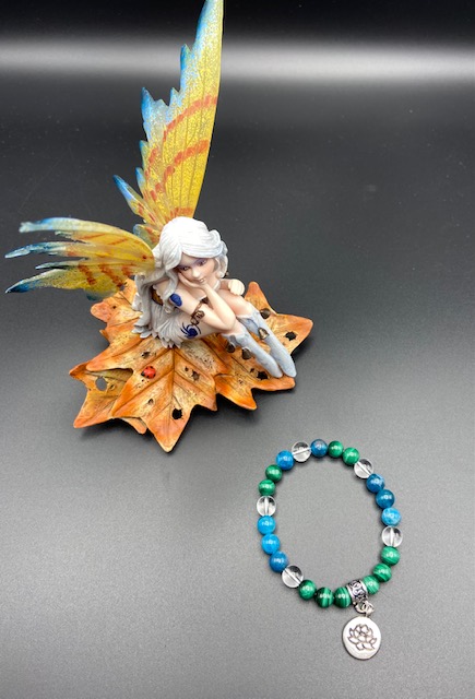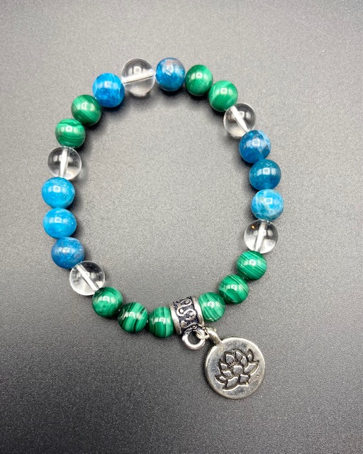 Bracelet Malachite / Apatite / Cristal – Breloque Lotus