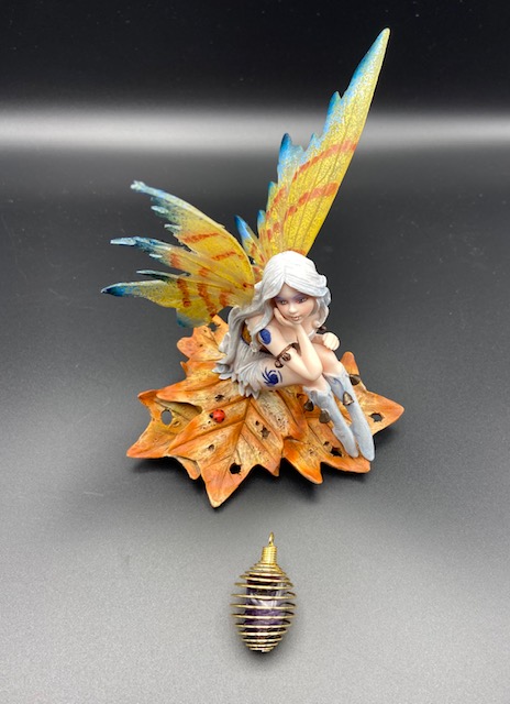 Pendentif porte-pierre spirale en métal doré pour pierre roulée.